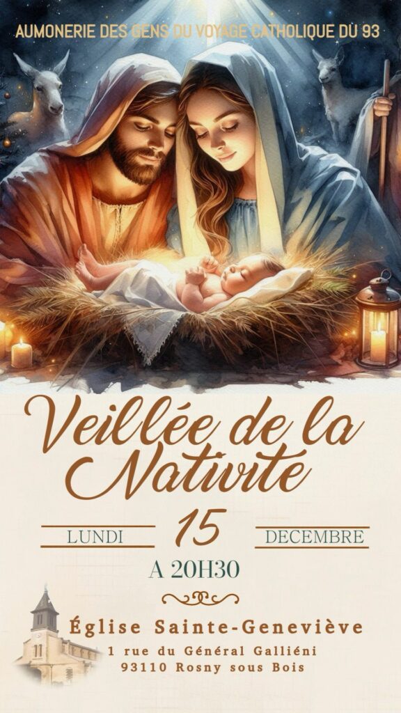 L’aumônerie des gens du voyage catholique de Seine-Saint-Denis vous invite à une veillée de prière, centrée sur le mystère de la Nativité qui se déroulera :